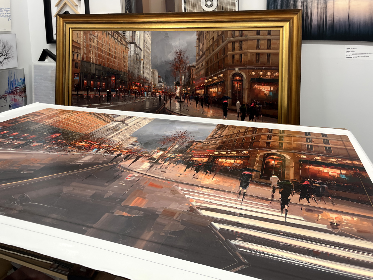 Service d’étirage sur faux-cadre, épaisseur régulière de ¾ de pouces ou "Galerie" de 1½ pouces